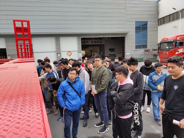 杨嘉汽车领导带领同学们参观了杨嘉罐式车生产线,低平板车生产线等。细致的向同学们介绍了杨嘉集团的发展历程、生产工艺、产品特点、技术创新等企业情况。同学们实地观看,仔细记录,我公司工作人员现场对同学们的疑问进行解答。