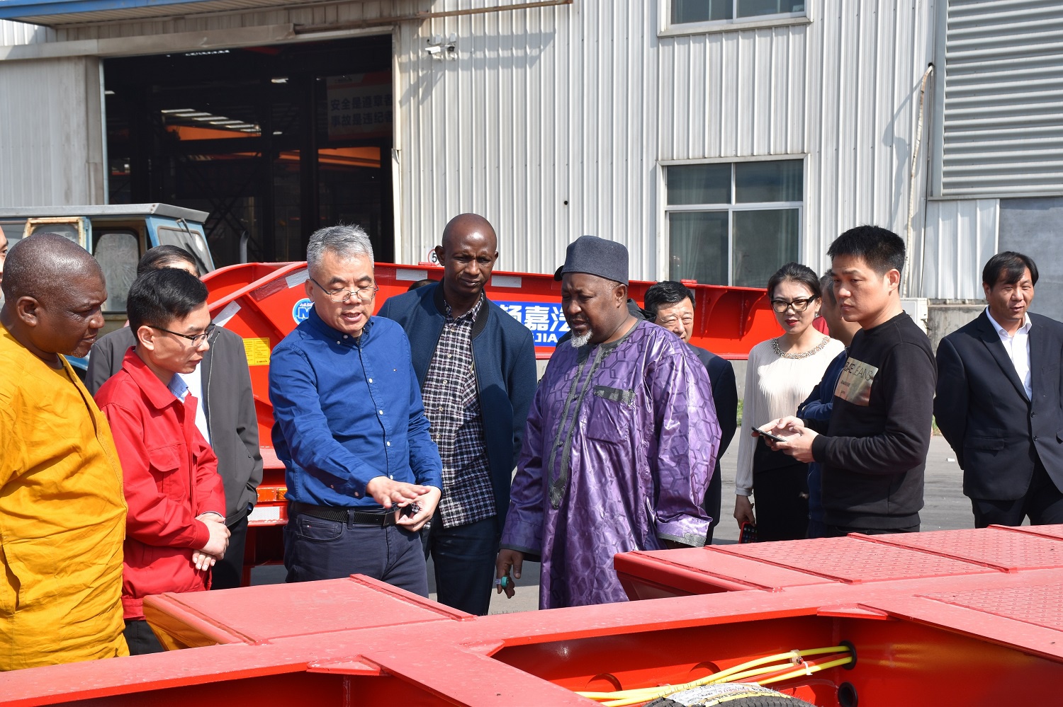 其中州长对我公司的低平板半挂车非常的有兴趣,仔细的询问了杨嘉低平板半挂车的配置,技术,载重等事宜,当场达成了初步采购意向。